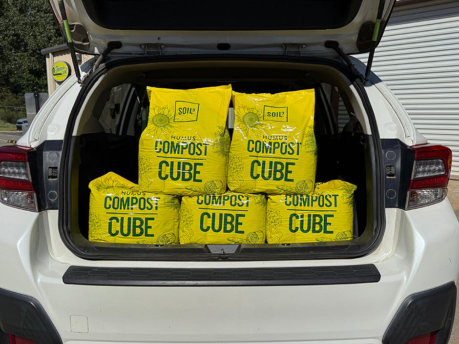 • 1 Mini Cube of compost for topdressing every 3-gallon-size tree, shrub, or flower when planting in native, unamended soil