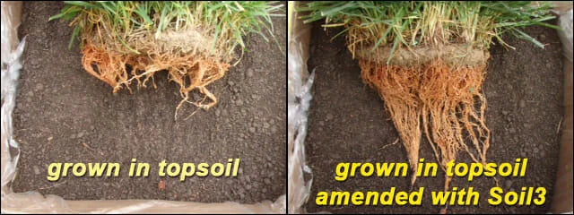 - Soil³ also promotes root growth (as portrayed in photos below), thereby creating a stronger lawn with deeper roots to withstand drought, heat, and cold.